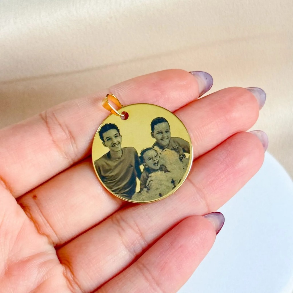 Comprar na Shopee[ SEMI JOIA ] Pingente Personalizado Medalha 28mm Foto Gravação Banhado a Ouro 18k Alto Padrão Presente Mimo Dia