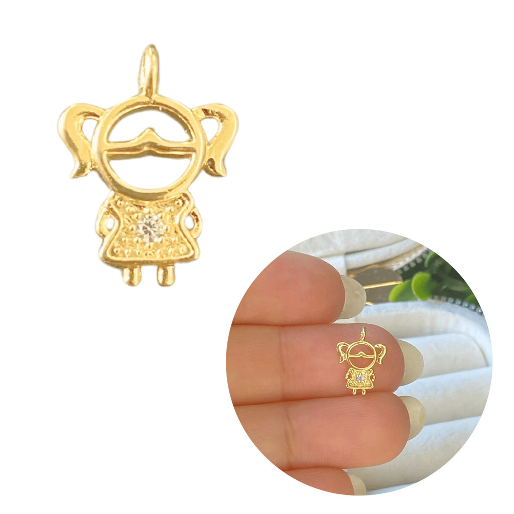 Pingente menina dourado filha banhado a ouro 18k cravejado