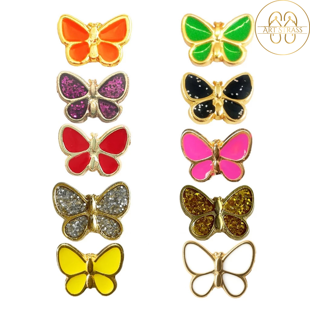 Kit 10 Pingentes Borboleta P Resinada Para Chinelos De Metal Em Banho Dourado