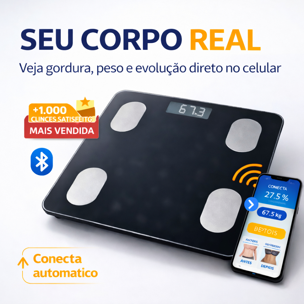 Controle Seu Corpo de Verdade: Peso e Gordura Corporal. Balança Digital Inteligente com Bluetooth e App