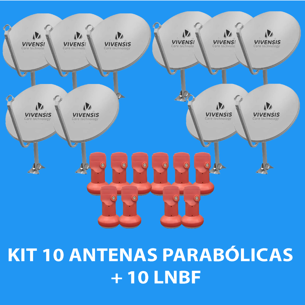 Comprar na ShopeeKIT 10 ANTENAS MINIPARABÓLICA VIVENSIS 60 CM BANDA KU + 10 LNBF SIMPLES
