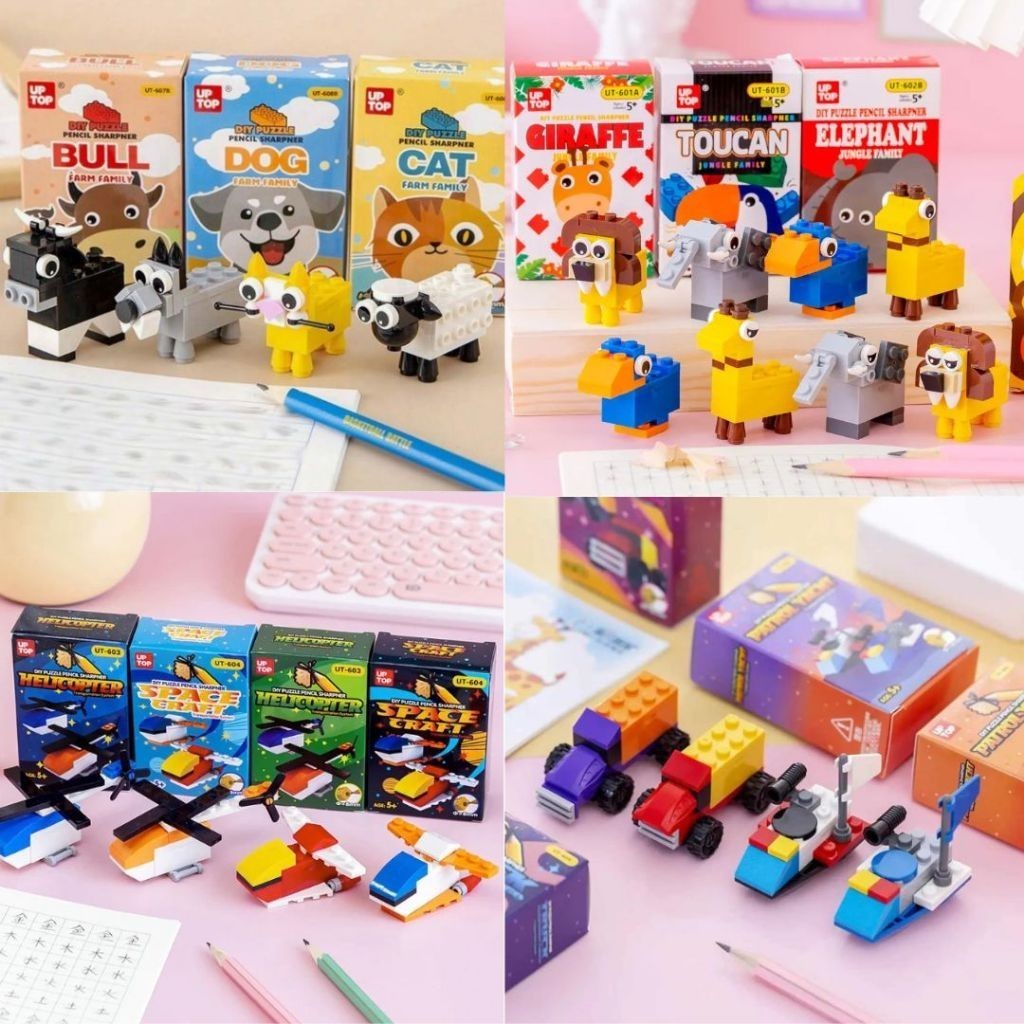 Apontador Bloco de Montar - Helicóptero, Nave Espacial, Caminhão e Animais