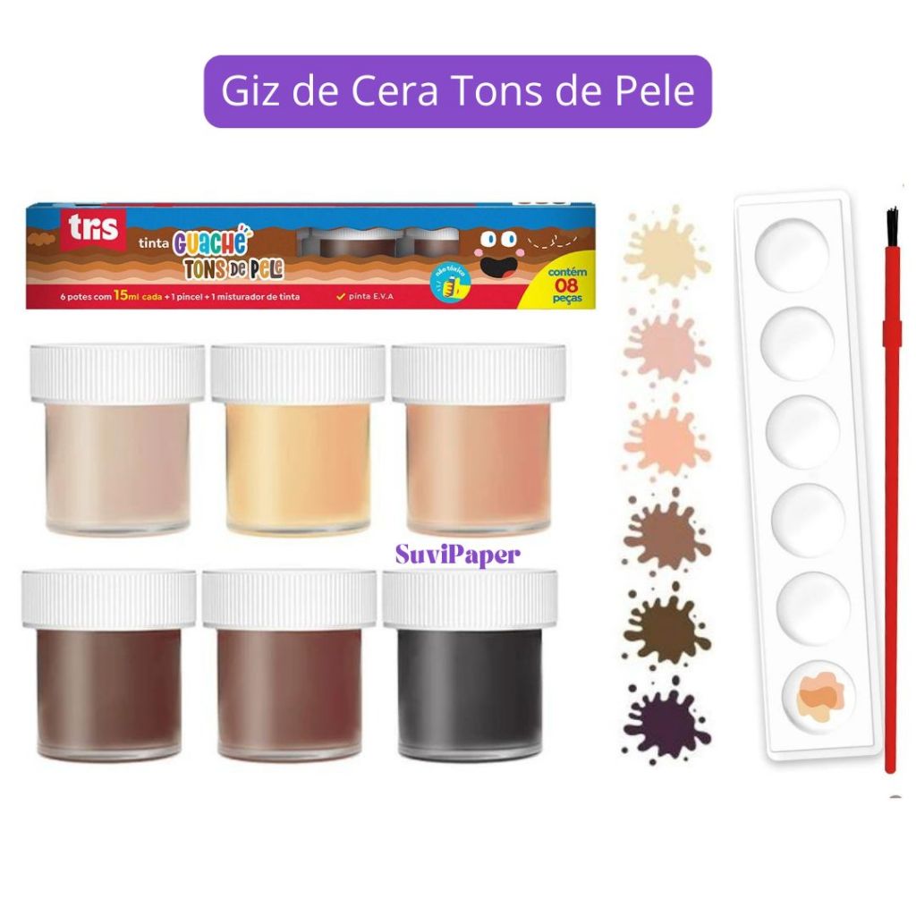 Comprar na ShopeeTinta Guache Escolar Tons de Pele Em Pote de 15ml 6 Cores Pré Escola Tris