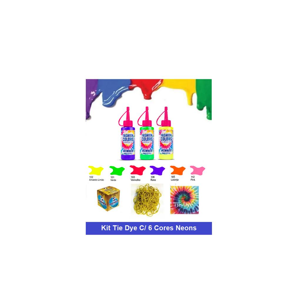 Comprar na ShopeeKit Tie Dye Tintas Aquarela Silk c/6 Cores Neon + Elásticos