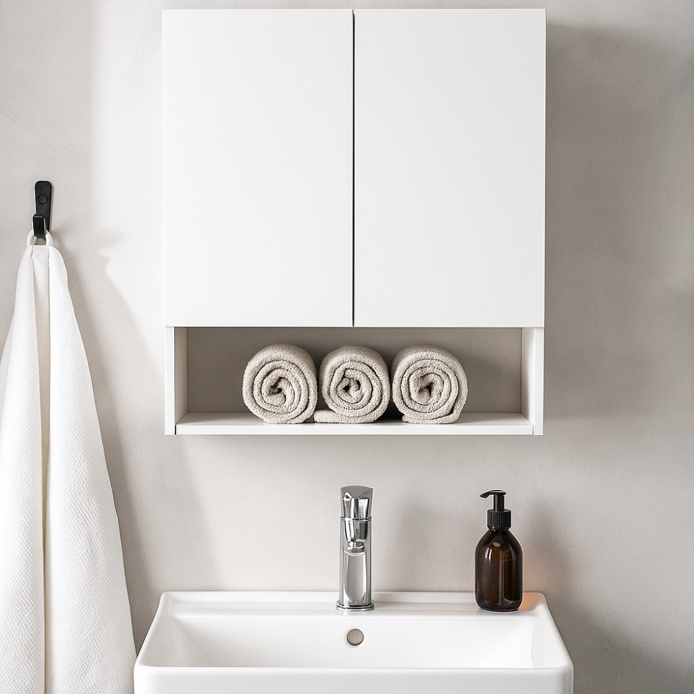 Armário Aéreo Cozinha Nicho Suspenso Parede 2 Portas Lavanderia Banheiro Modulado Compacto