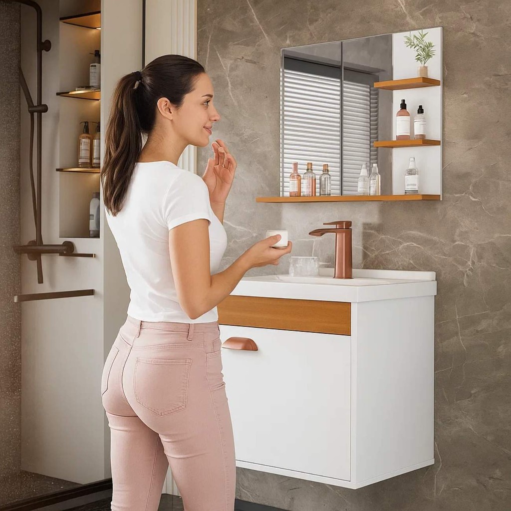 Comprar na ShopeeKit Banheiro Gabinete Suspenso com Espelho e Cuba Embutida Compacto Conjunto Armario Pia Espelheira