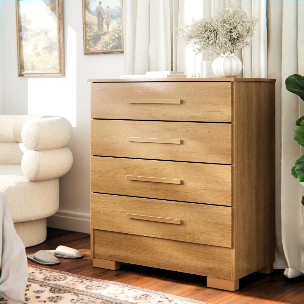 Cômoda Thor Em Madeira Com Quatro Gavetas Corrediças Nature Casa Lustre