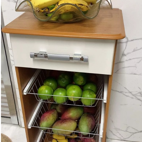 Comprar na ShopeeFruteira De Chao de Madeira Suporte para Bebedouro Com Fruteira 3 Cestos Aramados e Rodinhas