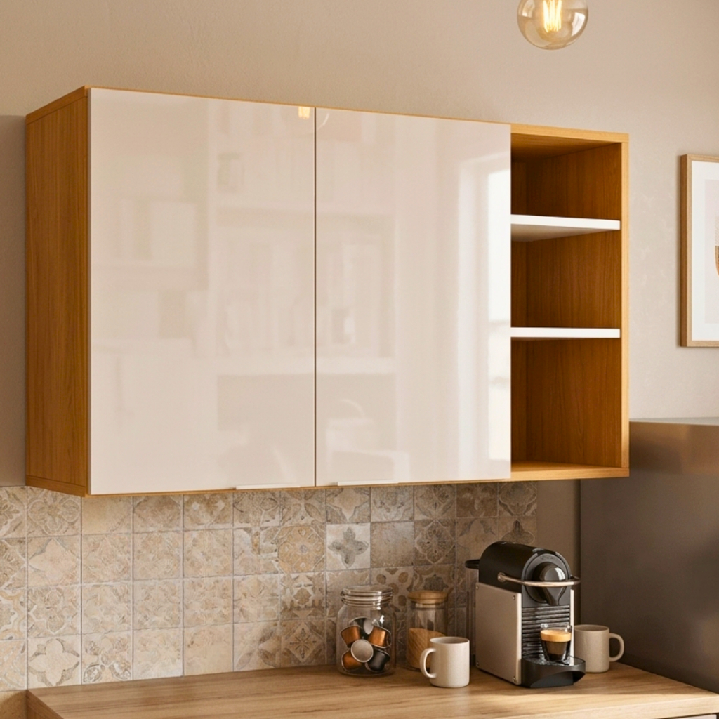 Armário De Parede Módulo Aéreo Suspenso 2 Portas Nicho Decoração Cozinha Multiuso Lavanderia Ópera