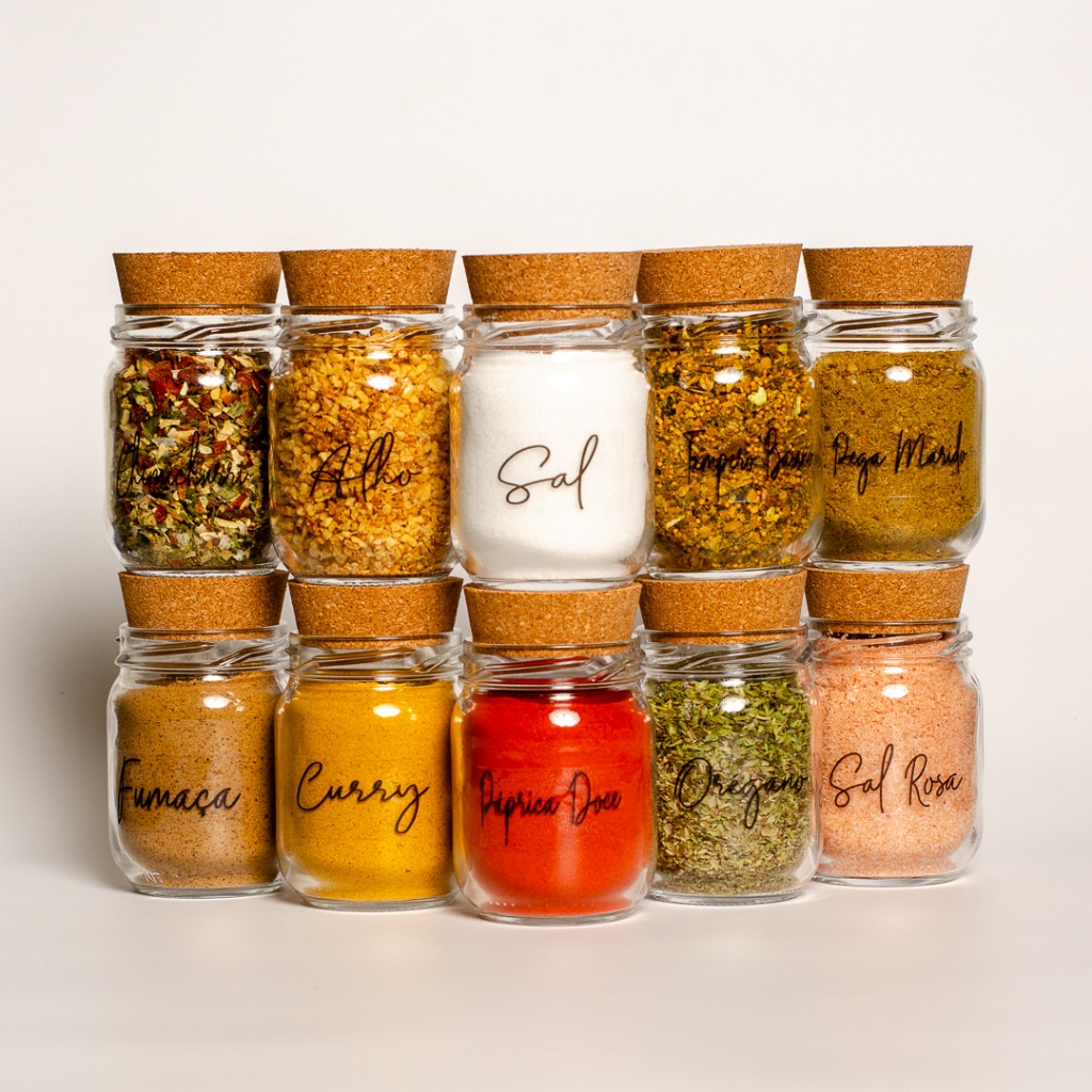 Comprar na ShopeeKit Potes de Tempero 200ml | Porta Tempero | Pote para Tempero | Cartela com 42 Adesivos Opcional