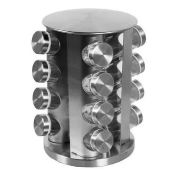 Porta Tempero Giratório Designer Redondo 16 Peças Inox