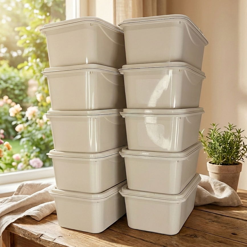 Comprar na ShopeeKit Completo com 12 Potes Plásticos - 1 Litro - Formatos Variados para Organização e Praticidade