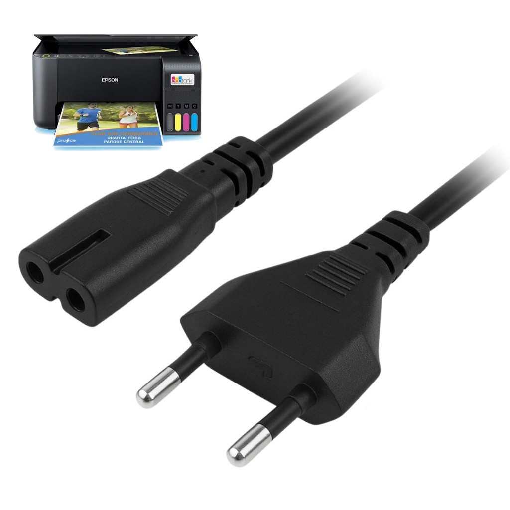 Comprar na ShopeeCabo de Energia Para Impressora HP Epson Canon Lexmark Bipolar 2 Pinos 1,5 Metros Preto, Padrão Novo