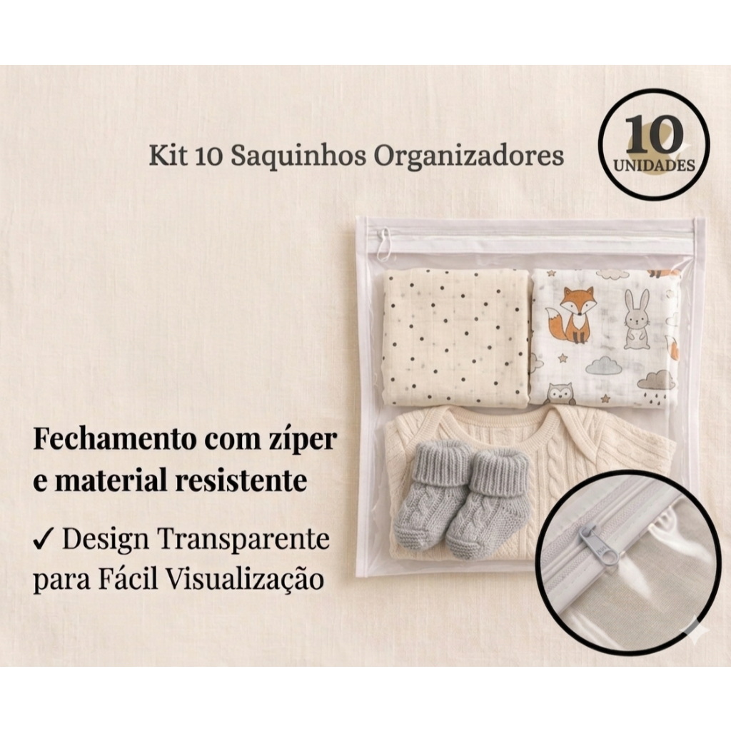 Comprar na ShopeeKit com 10 Saquinhos Organizadores 26x30cm com Zíper – Ideal para Mala de Maternidade e Viagem