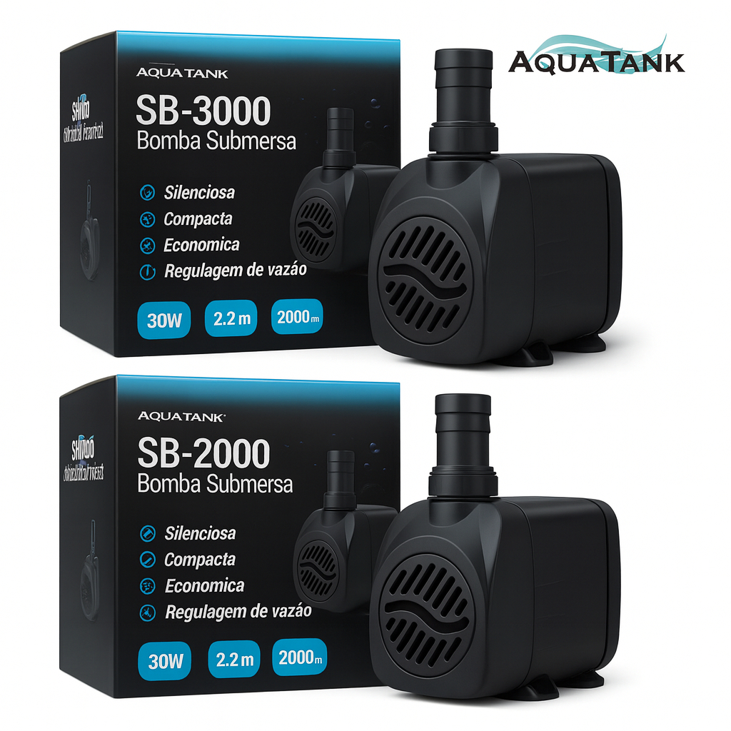 Bomba Motor Submersa 3000l/h Aquatank SB-3000 Litros Por Hora SB-2000l/h Aquario Fonte Lago Eleva Agua até 3M