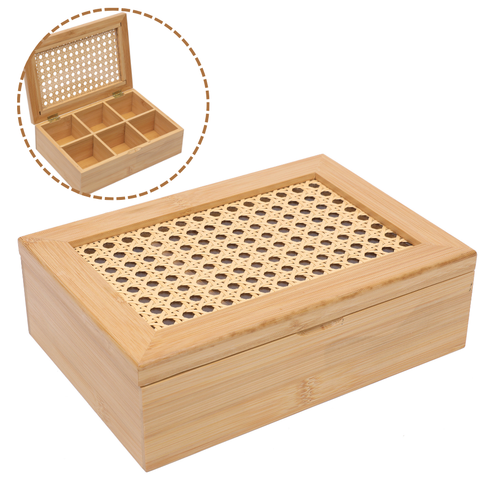 Comprar na ShopeeCaixa Porta Chá e Especiarias Bambu E Palhinha 6 Divisórias Mimo Style