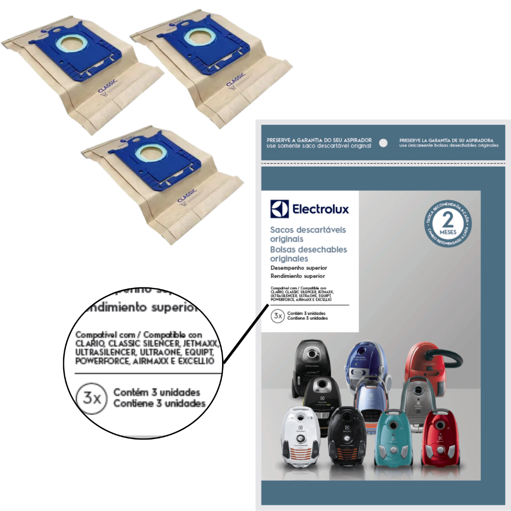 Comprar na ShopeeKit C/3 Sacos Aspirador Electrolux A20 / A20L / A20S / GT300 / GT30N / GT3000 PRO ORIGINAL MODELO NOVO