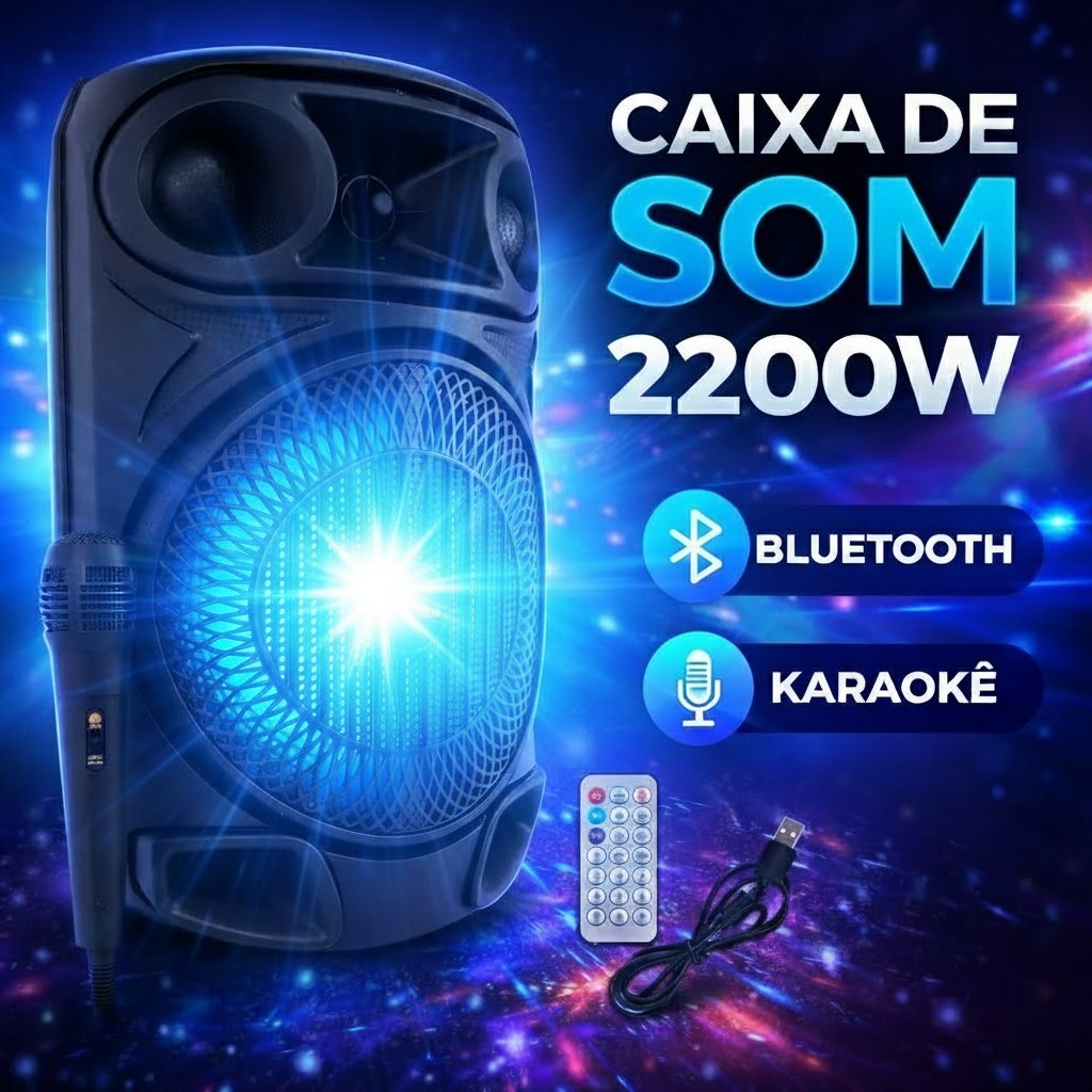 Comprar na ShopeeCAIXA DE SOM BLUETOOTH PORTÁTIL 2200W PMPO COM MICROFONE E KARAOKÊ