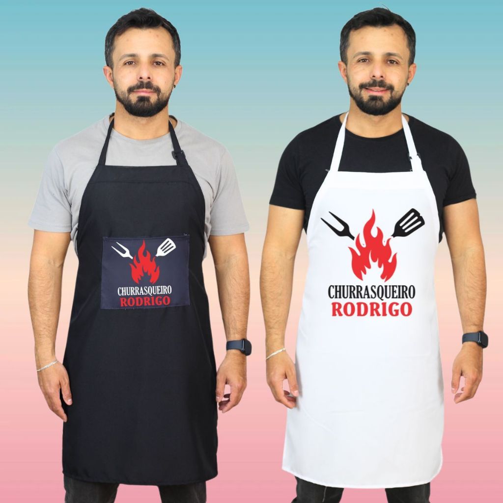 Comprar na ShopeeAvental Churrasqueiro Nome Personalizado Estampado Preto Oxford Unisex