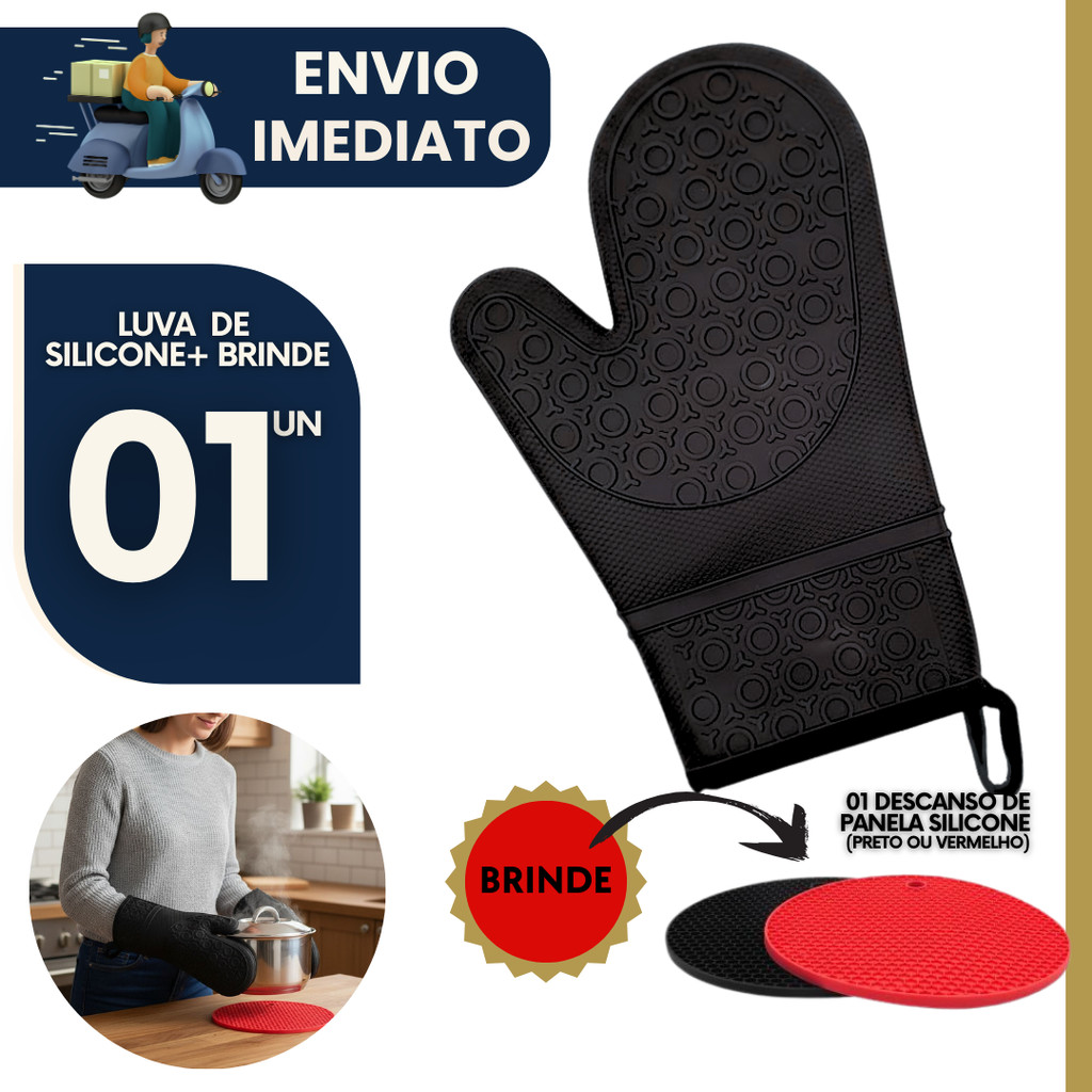 Luva Silicone forro térmico Proteção Cozinha BRINDE Descanso Panela Antiderrapante Cozinha