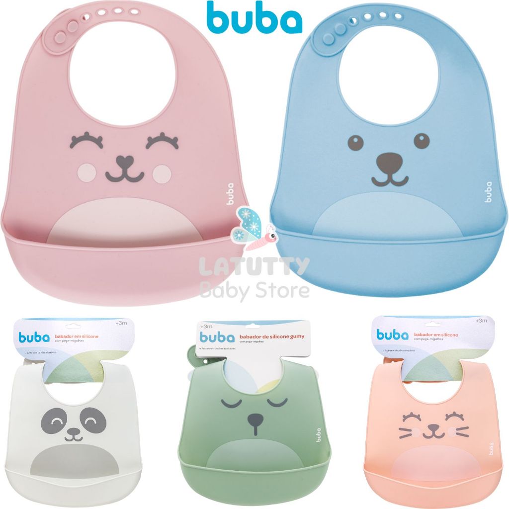 Babador Silicone Infantil Buba Babador Impermeável Para Bebê Com Pega Migalhas Menina Menino Gumy