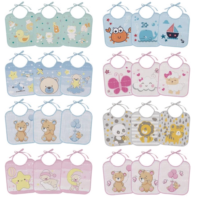 Kit 3 Babador Flanelado Plastificado alimentação bebe 21cm X 19cm