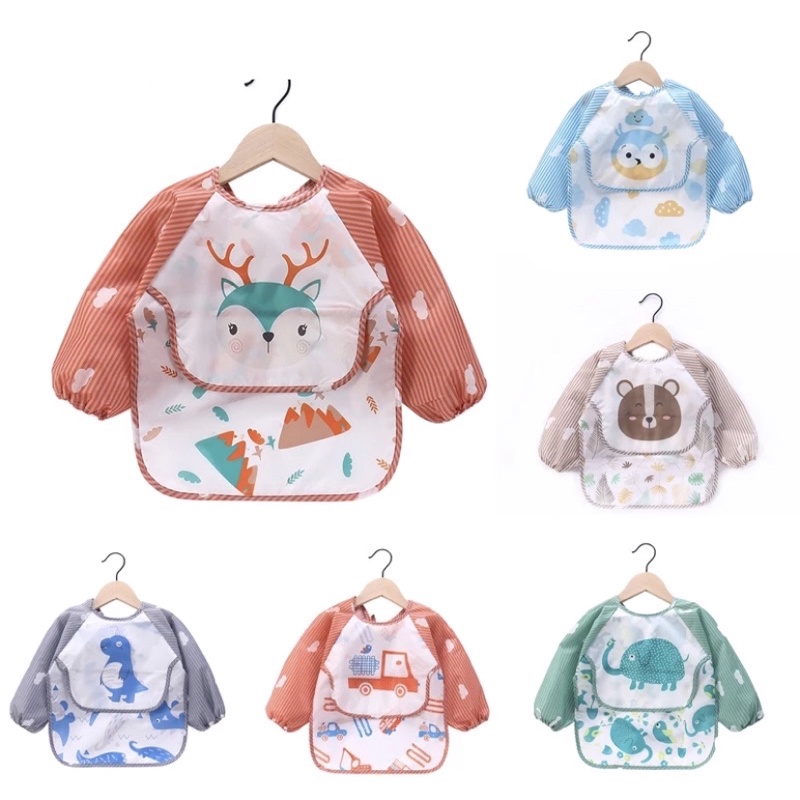 Comprar na ShopeeBabador de Plástico Avental Manga Longa Impermeável Atividades Infantil Alimentação Bebe Criança Meninas e Meninos