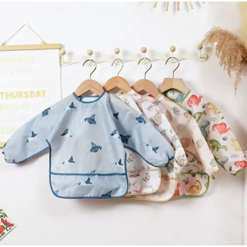 Comprar na ShopeeBabador/ Avental Manga Longa Impermeável com Cata Migalhas e Fechamento em Velcro - 9 meses a 4 anos