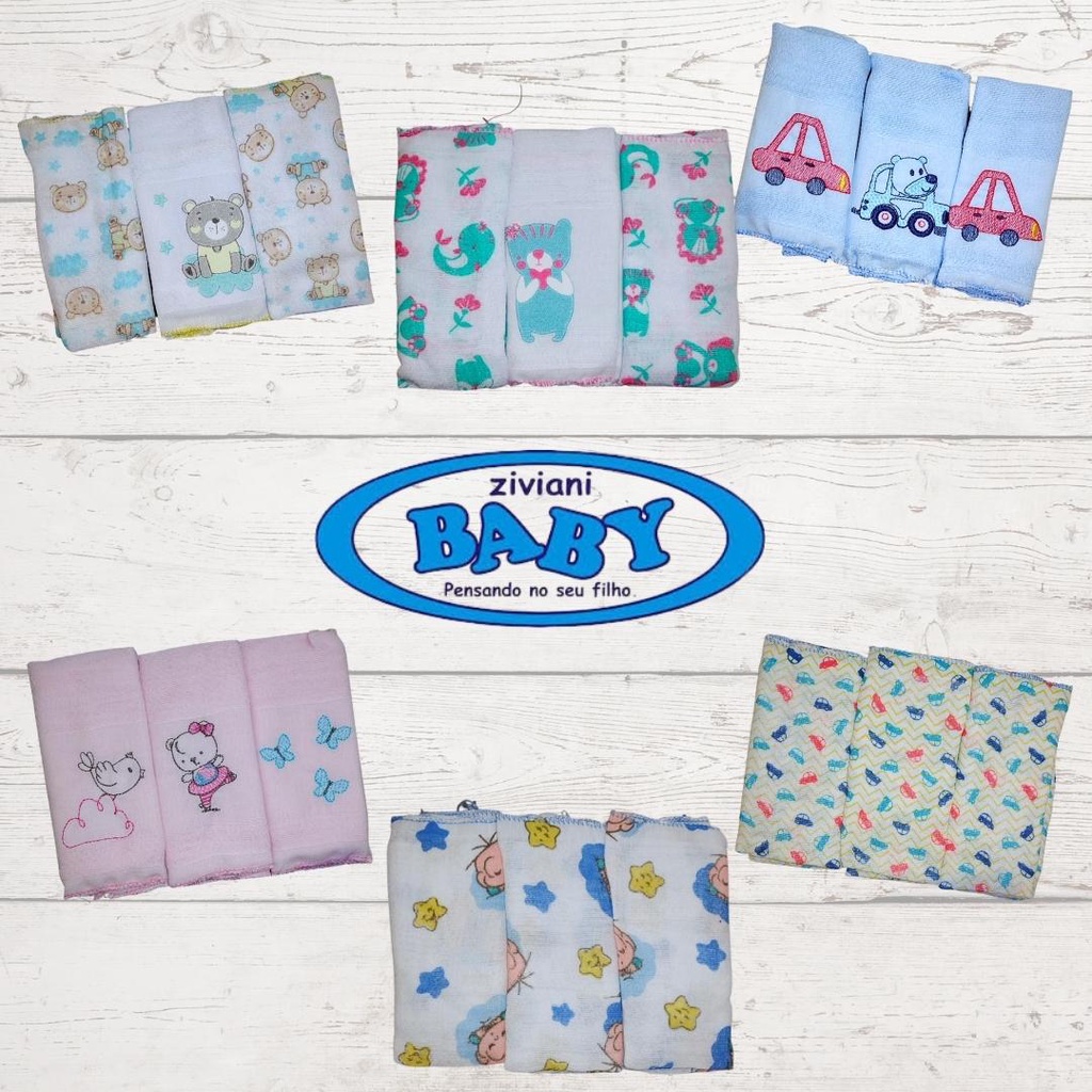 Comprar na ShopeePaninho de Boca Bebê Babete Fraldinha kit c/3 unidades - Carícia