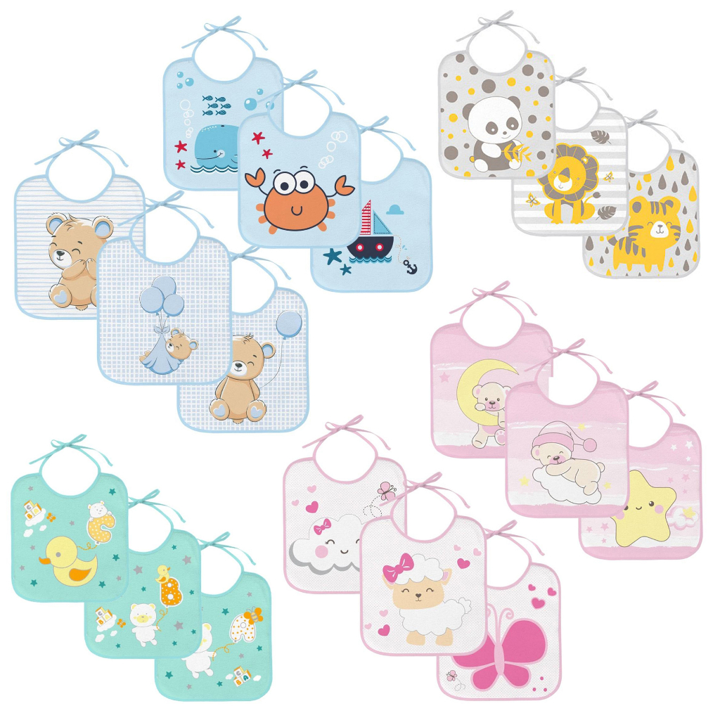Kit 7 Und Babador Infantil Bebe Papinha Impermeavel Plastificado Facil Limpar