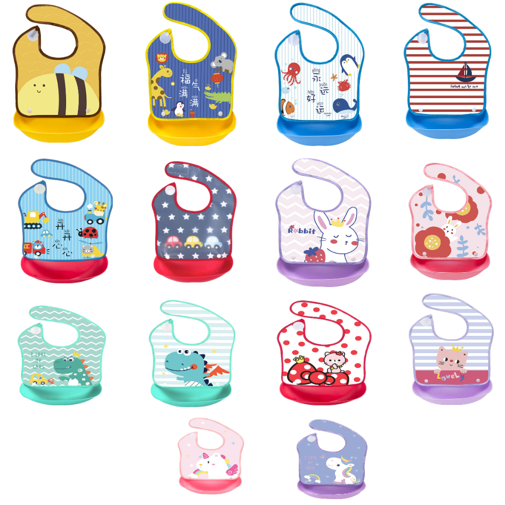 Comprar na ShopeeBabador de Plástico e Silicone Babador Infantil Cata Migalha Impermeável varias estampas