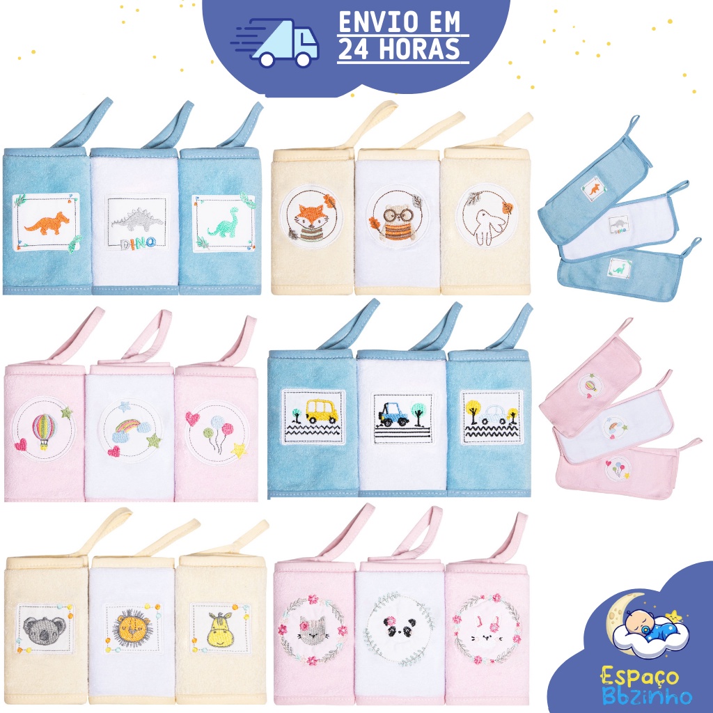 Comprar na ShopeeKit Babador 3 Und Forro Confortavel Algodao Enxoval Ajustavel Facil Limpar Feminino Bebe Infantil