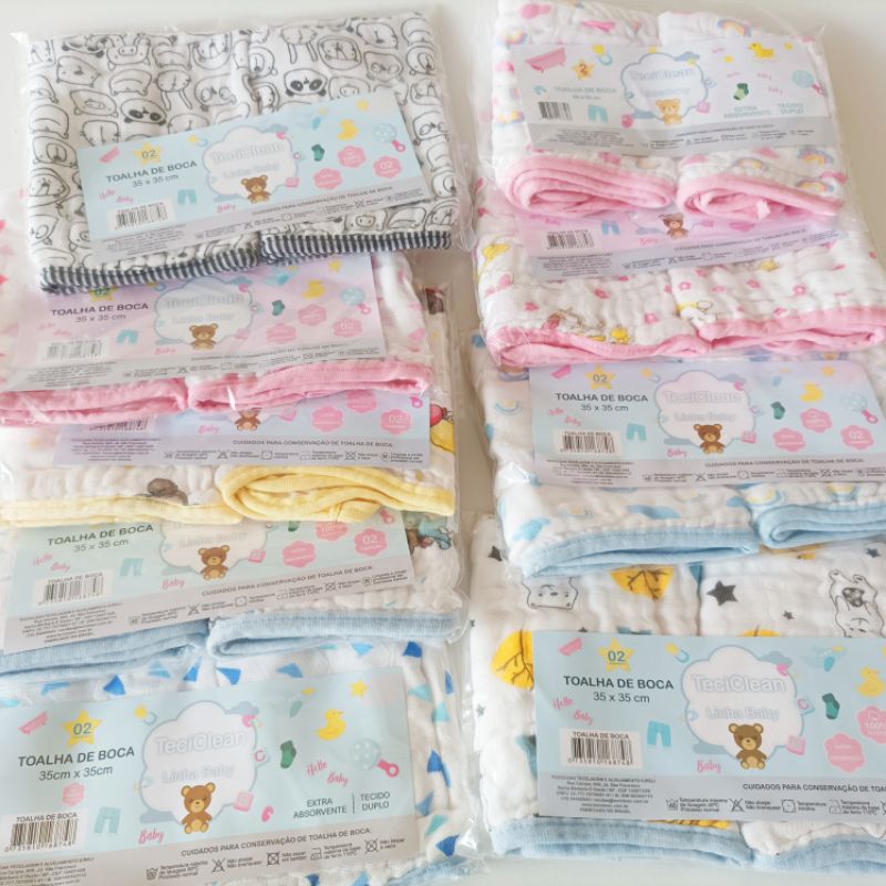 Comprar na ShopeePanos de boca soft 3 camadas kit com 2 fralda de boca 100% algodão