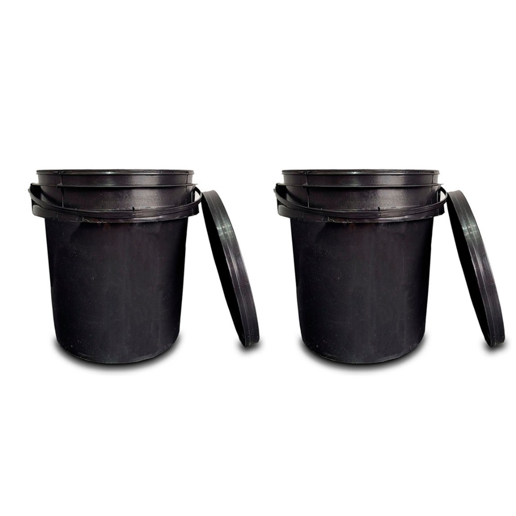 Comprar na ShopeeKit 02 Baldes Plástico 5L Preto Com Tampa Hermética e Alça Plástica Para Armazenagem Geral Multiuso