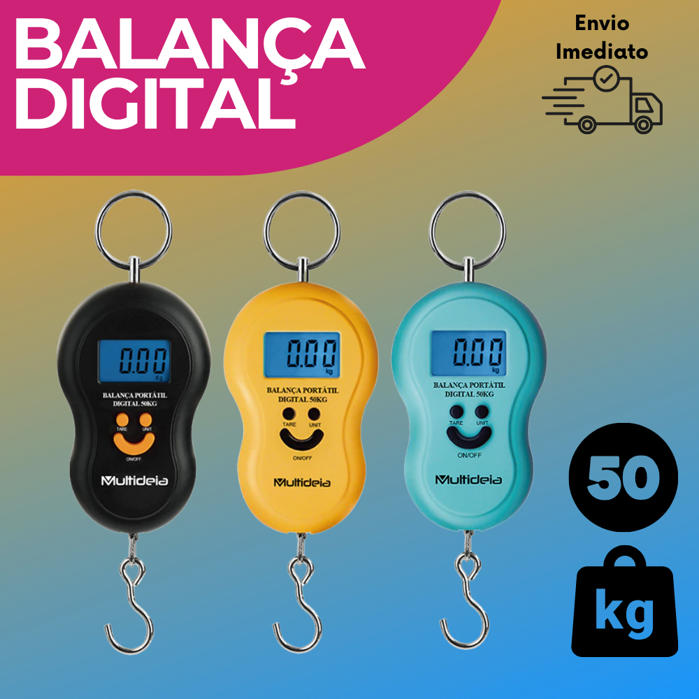 Balança Digital Portátil De Mão gancho Até 50kg Trava Mala Bagagem