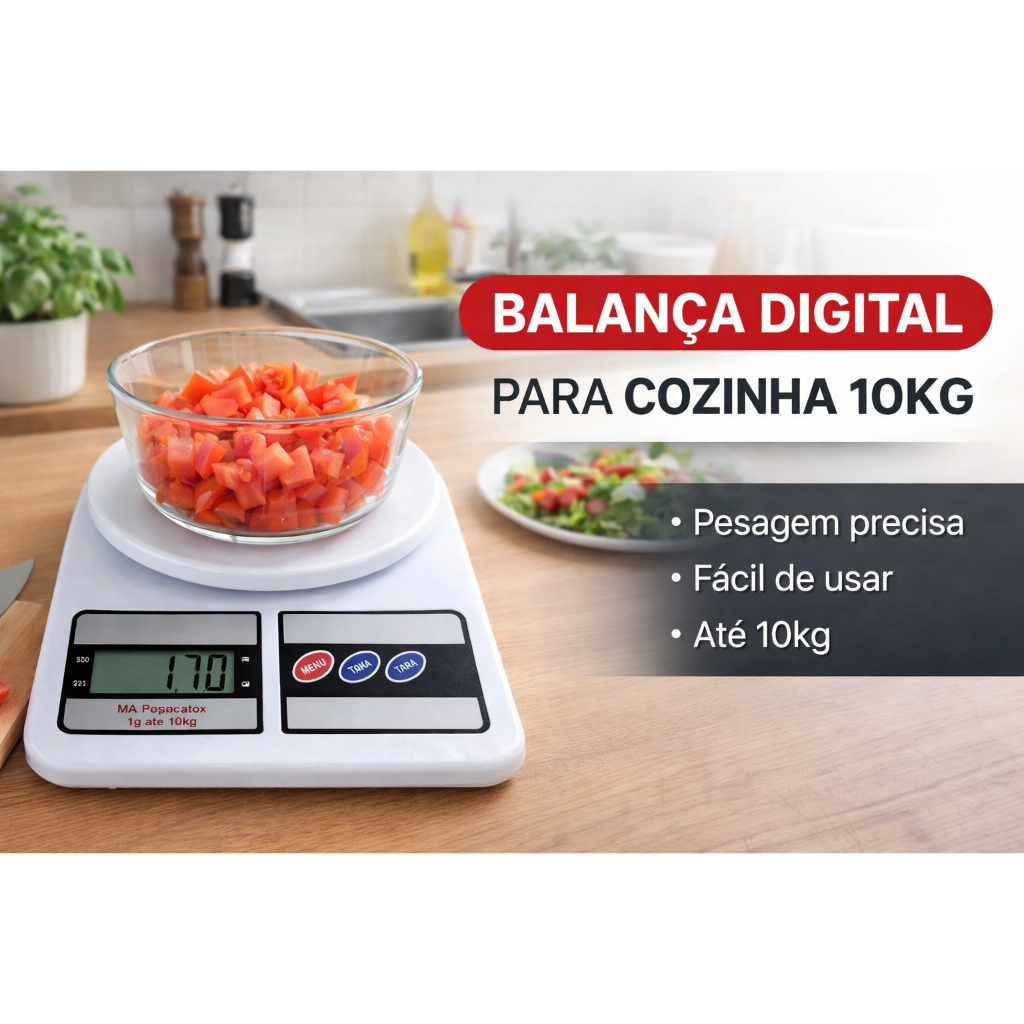Comprar na ShopeeBalança Digital de Cozinha Inox alta precisão escala de 1g a 10kg com Visor digital Pilhas Inclusas