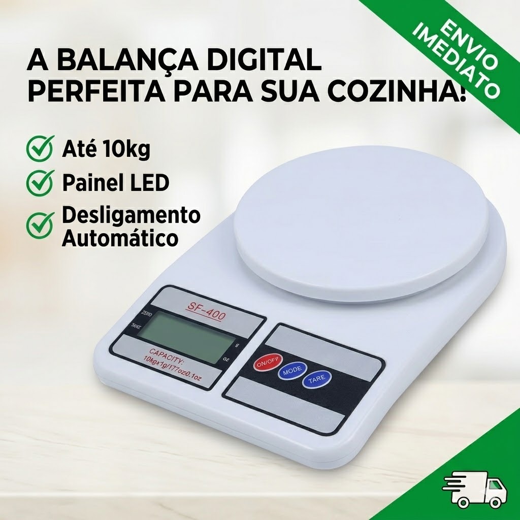 Comprar na ShopeeBalança Digital de Cozinha Inox 10Kg | Alta Precisão Portátil para Alimentos