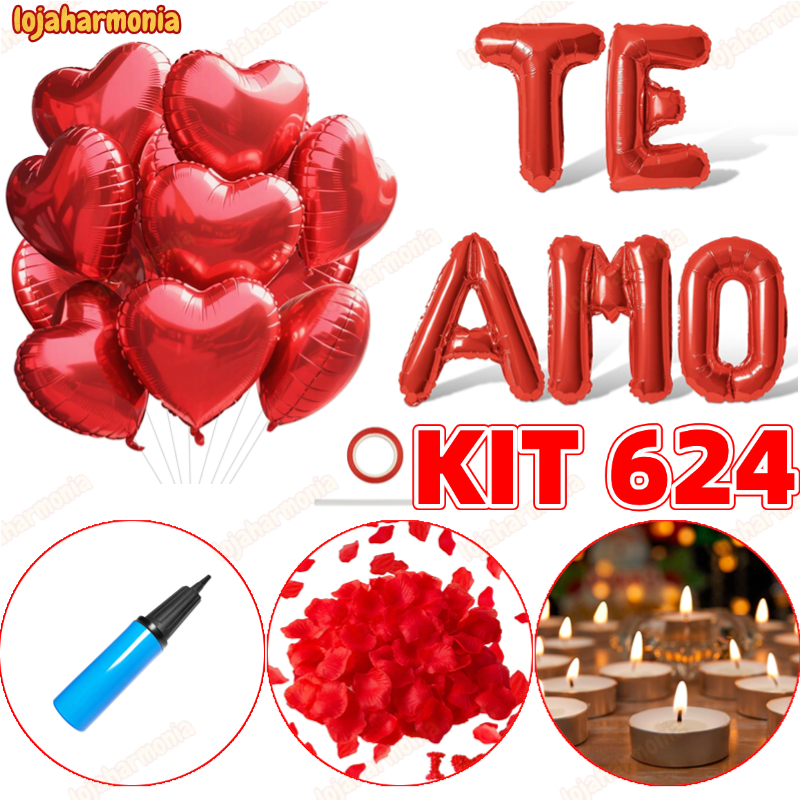 Comprar na ShopeeKit Romântico - 200 Pétalas + 10 Velas + 10 Balões Coração + Balão Te Amo + Fitilho + Bomba-LJ