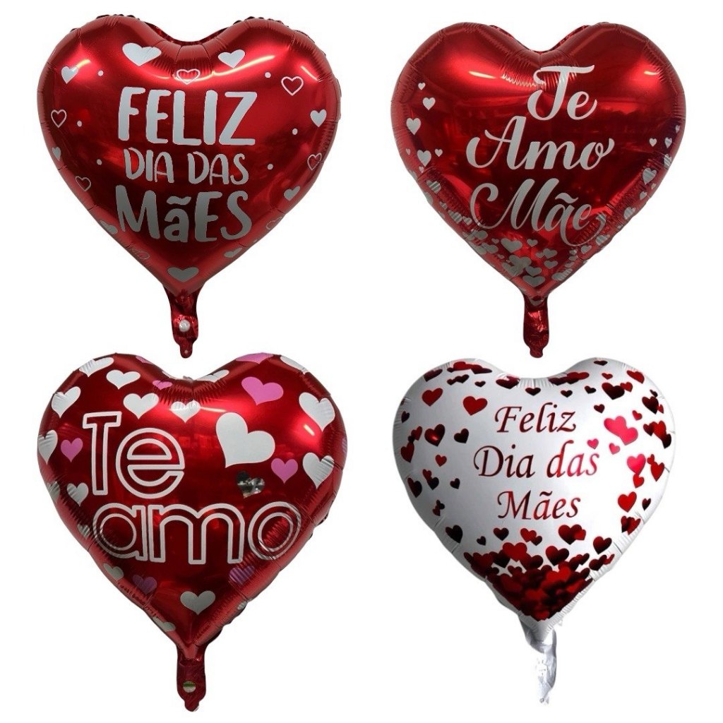 Comprar na Shopee10 Balão Metalizado Coração Vermelho Feliz Dia Das Mães Mãe Te Amo 45cm