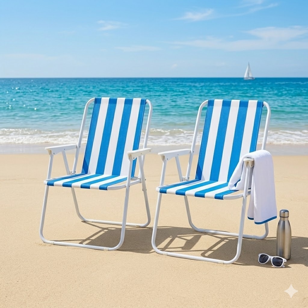 Comprar na ShopeeKit 2 Cadeira de Praia Varanda Alta em Aço 110 kg Cores Variadas