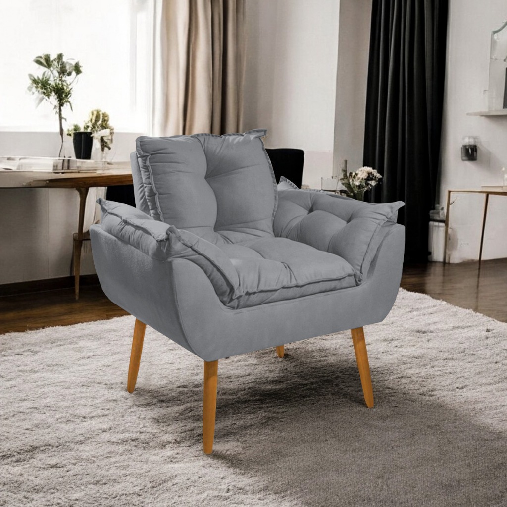 Poltrona para Sala de Estar TV Opala Pés Palito Suede DELUXE