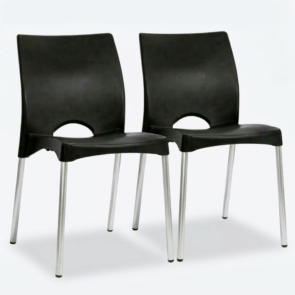 Comprar na ShopeeKit 2 Cadeiras de Jantar Boston Preta Branca Empilhável Pés de Alumínio Resistente