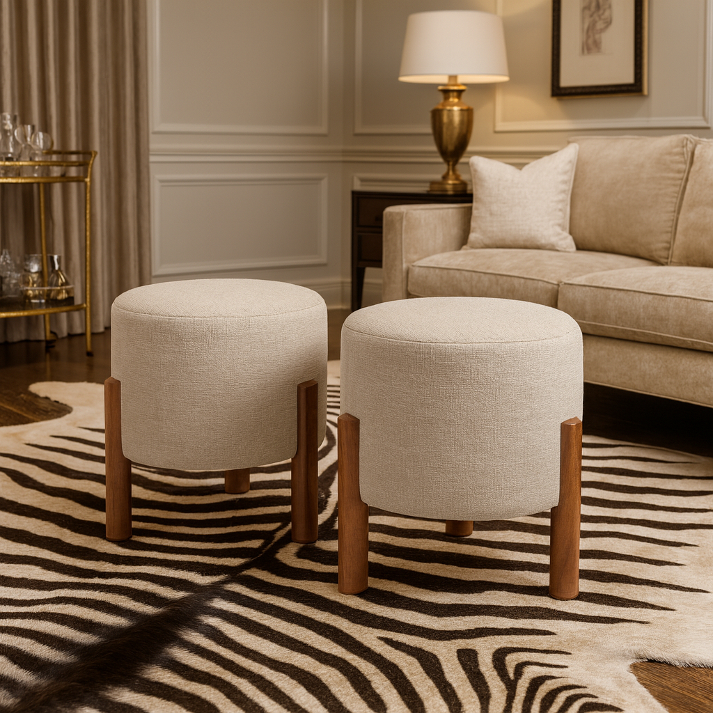 Comprar na ShopeeKit 2 Puffs de Linho Decorativo Decoração Redondo Estofado Confortável Luxo Sala de Estar Escritório