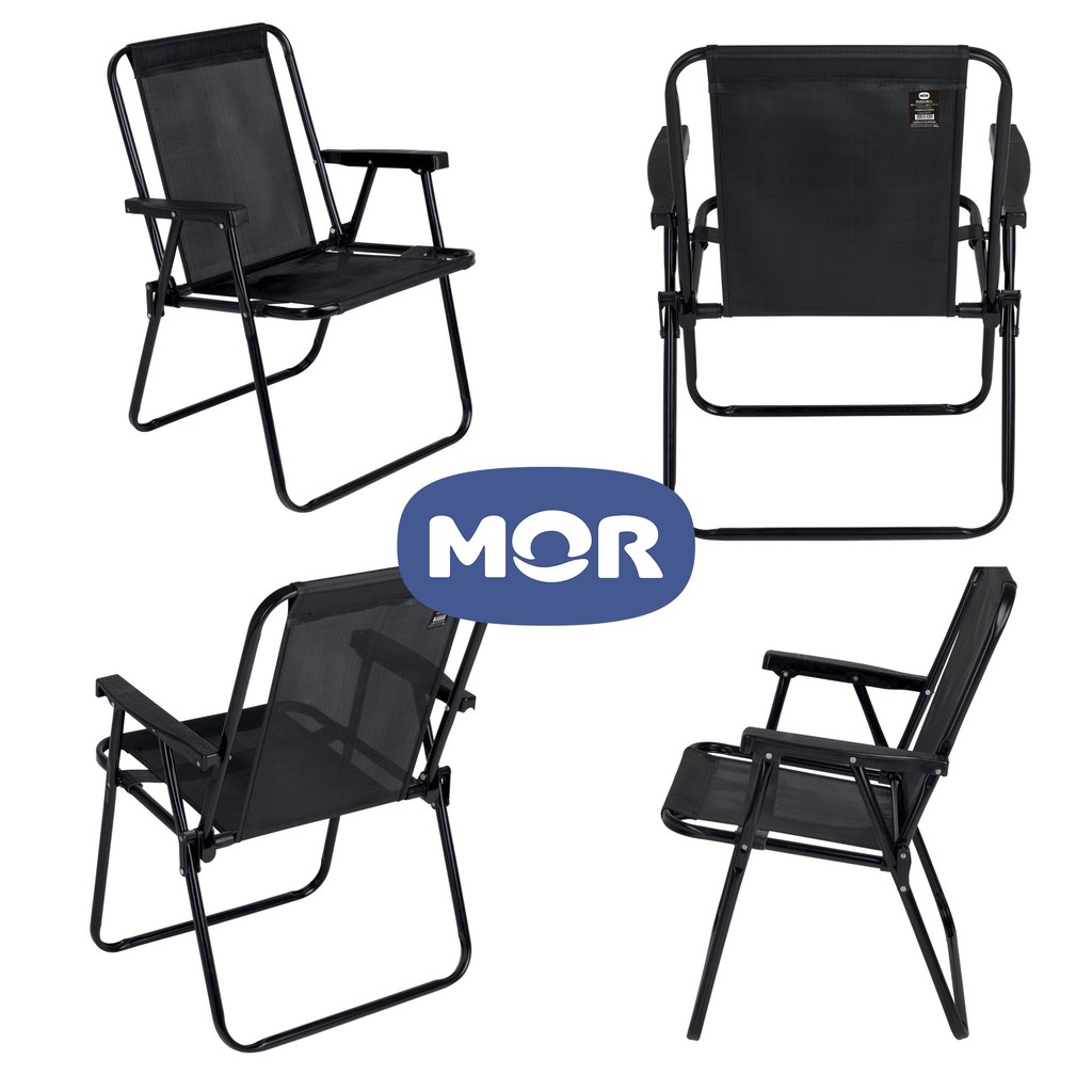 Comprar na ShopeeCadeira Preta de Praia Alta e Dobrável em Aço Mor - Piscina, Pesca, Camping e Varanda