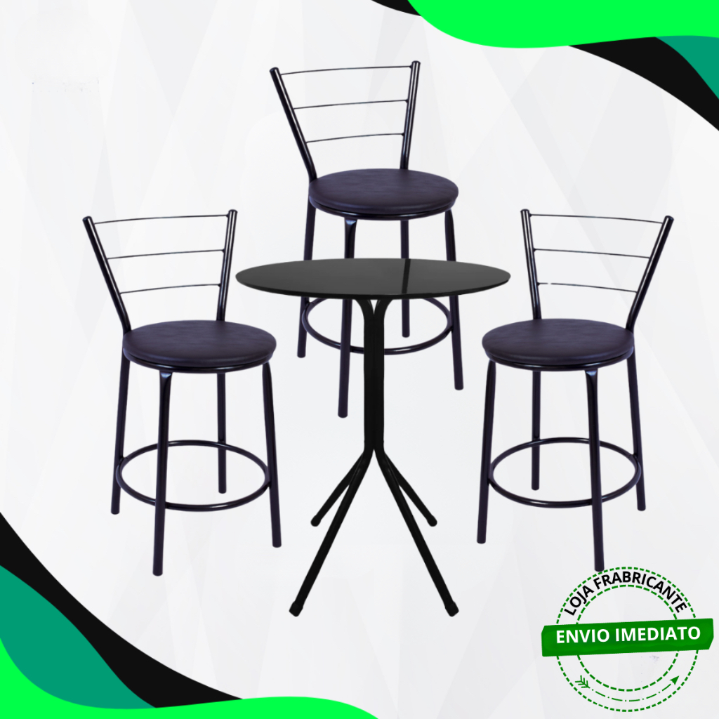 Comprar na ShopeeKit Mesa Bistrô Estilo Único + 3 Banquetas 3 Arames Baixa Cozinha Sacada Bar
