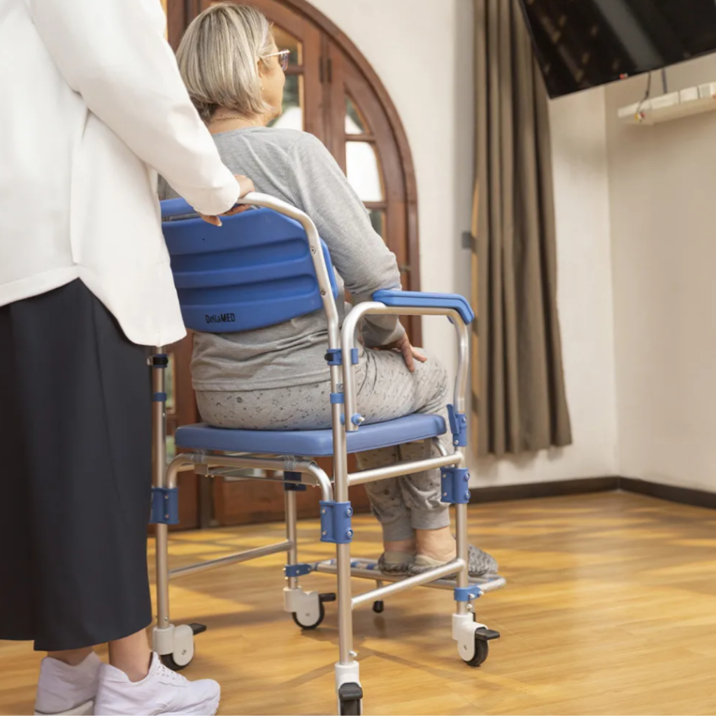 CADEIRA DE BANHO HIGIENICA EM ALUMINIO C/RODAS 150KG D60 DELLAMED