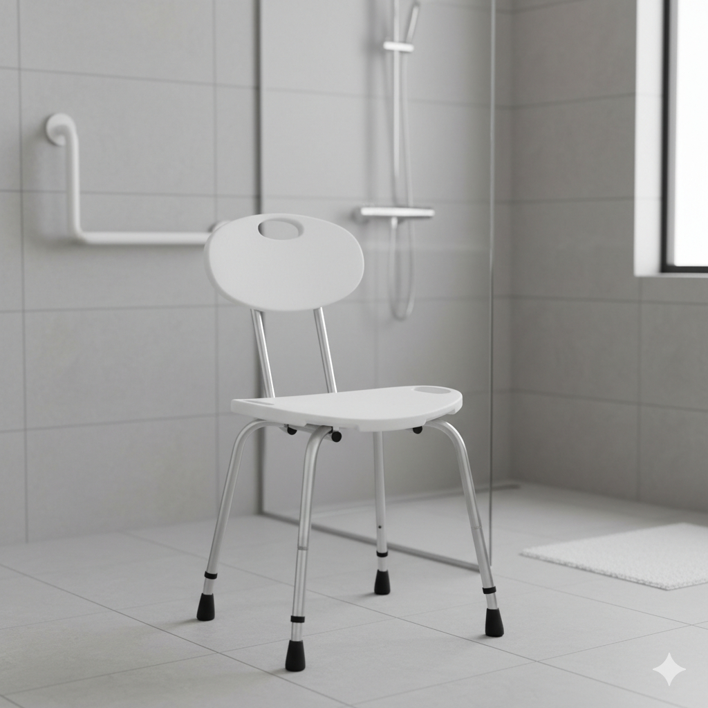 Cadeira Para Banho Com Encosto Alumínio Desmontável e Ajustável
