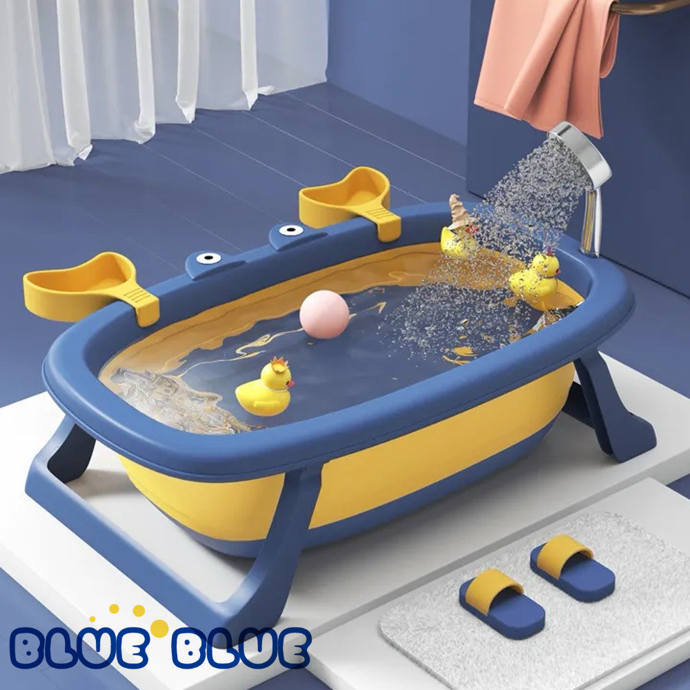 Comprar na ShopeeBanheira Bebê Dobrável AZUL Portátil com Termômetro Segurança Banho Infantil Compacta
