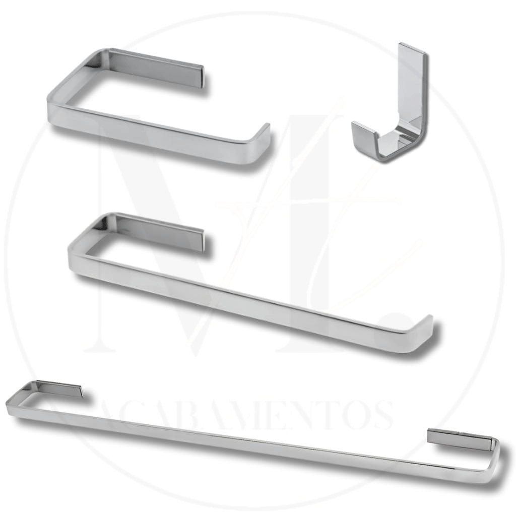 Kit para Banheiro Quadrado Cromado 4 Peças- Inox Alumínio Acessório Conjunto de Banheiro Completo