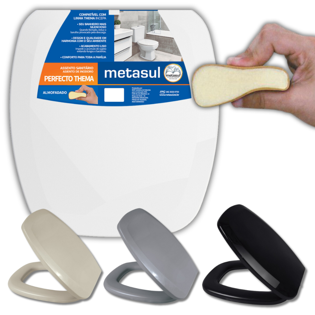 Assento Sanitário Almofadado Modelo PLUS SLIM Oval Universal Metasul Tampa De Vaso Privada